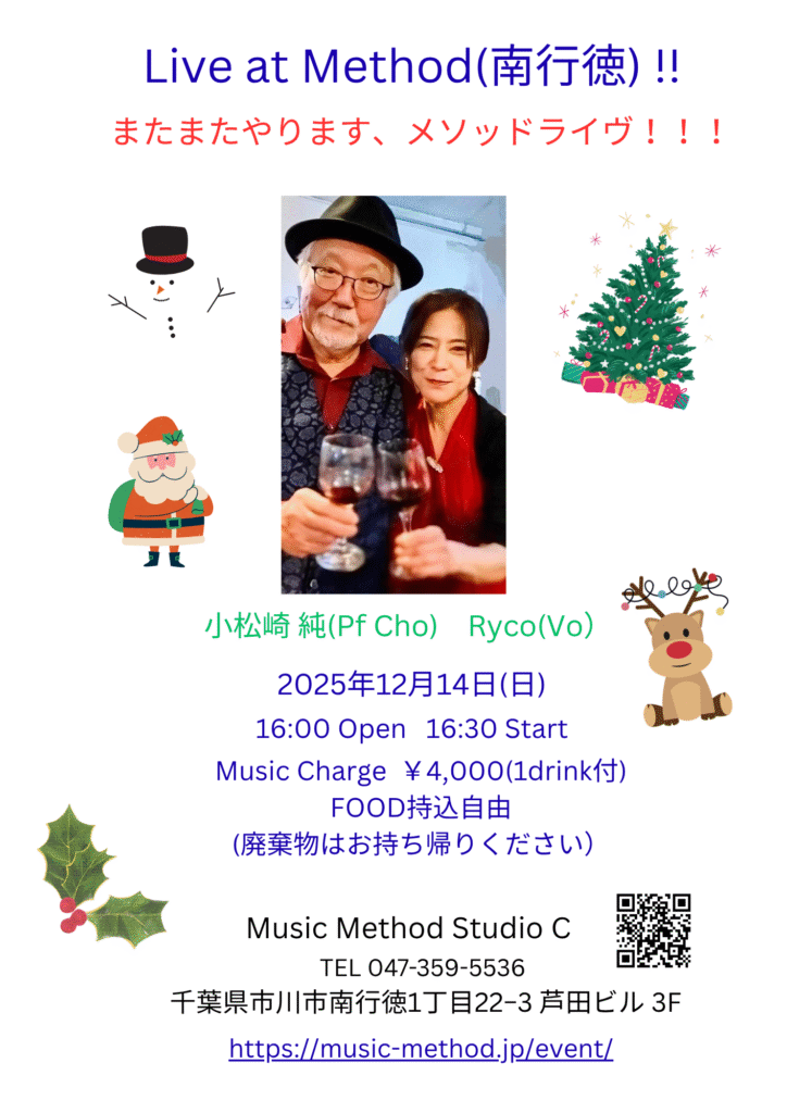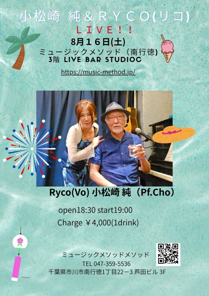 2025年8月16日(土)南行徳 メソッド Ryco(Vo) 小松崎 純(Pf,Cho)